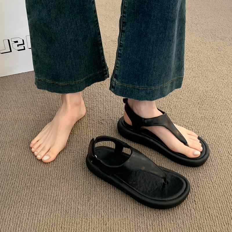 ビーチサンダル こなれ感 厚底 レザー ローマサンダル 韓国系 レディース トングサンダル 黒 ブラック 白 茶色 バイカラー スポーツサンダル 個性的 ルーズ アンニュイ フラット 春夏 シューズ ストラップ アンクル 足首固定 大人女子 オシャレ