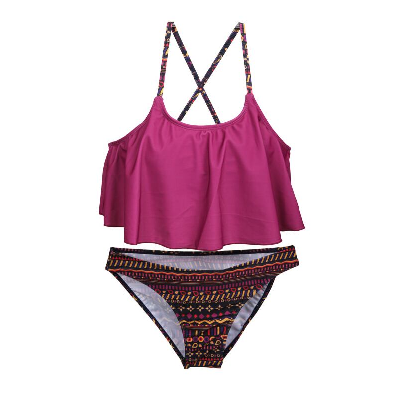 水着 タンキニ ビキニ 小胸 キャミソール 大人 シック エスニック ワインレッド リゾート プール 海 バカンス db0032