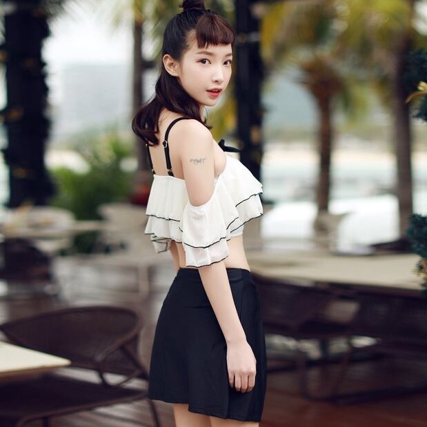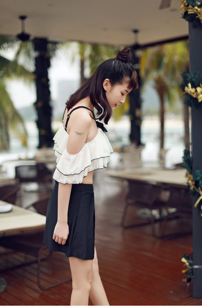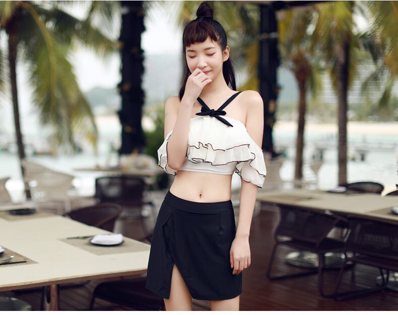 水着 ビキニ レース フリル スカート モノトーン リボン ガーリー 大人可愛い キュート 大きいサイズ 体型カバー リゾート プール 海 バカンス db0037