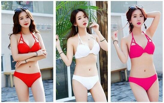 水着 ビキニ 無地 大人 コンサバ シンプル 上品 ホワイト ローズピンク レッド 大きいサイズ 着痩せ リゾート プール 海 バカンス db0072