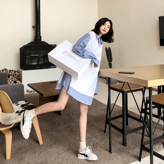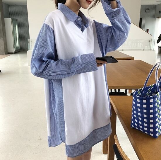 シャツワンピース ワンピース 大きいサイズ ゆったり 長袖 春ワンピース 春 韓国 ファッション レディース 韓国 レディース ファッション ワンピース 新作 トレンド おしゃれ 大人可愛い st0080