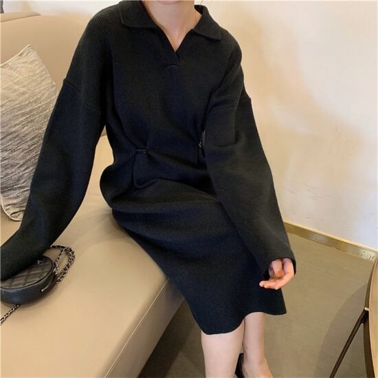 ニットワンピース ニット ワンピ ミモレ丈 ワンピース 大きいサイズ ゆったり 長袖 春ワンピース 春 韓国 ファッション レディース 韓国 レディース ファッション ワンピース 新作 トレンド おしゃれ 大人可愛 st0129