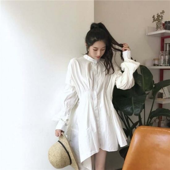 シャツワンピース ワンピース 大きいサイズ ゆったり 長袖 春ワンピース 春 韓国 レディース ファッション ワンピース 新作 トレンド おしゃれ 大人可愛い st0154