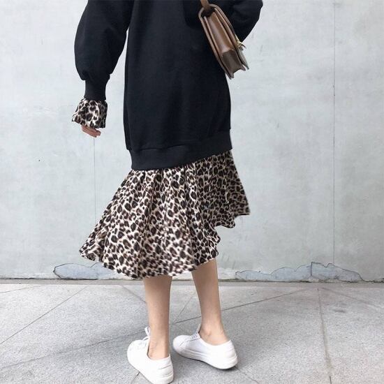 ワンピース 大きいサイズ 春ワンピース 春 韓国 ファッション レディース 韓国 レディース ファッション ワンピース 新作 トレンド おしゃれ 大人可愛い ヒョウ柄 st0224