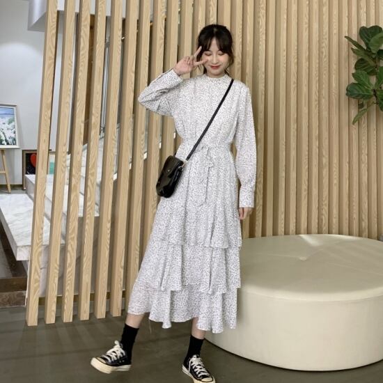 ロングワンピース ワンピース ロング丈 マキシワンピース ミモレ丈 ワンピース 大きいサイズ ゆったり 長袖 春ワンピース 春 韓国 ファッション レディース 韓国 レディース ファッション ワンピース 新作 トレンド おしゃれ 大人可愛い st0247