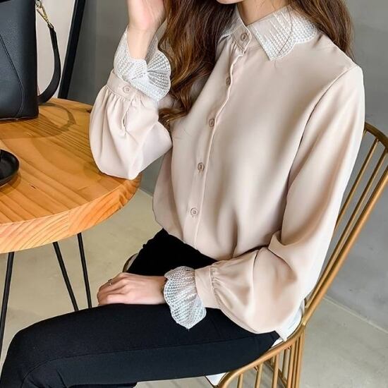 ブラウス レディース シャツブラウス シャツ レディース レースブラウス レディース ファッション トップス ゆったり 長袖 レーストップス レース 春ブラウス 春 韓国 ファッション レディース トップス 新作 韓国 ファッション レディース 新作 st0711