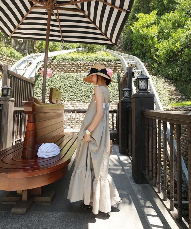 ワンピース ロング マキシ リネン ロングワンピース マキシワンピース フリル フレア ノースリーブ 無地 可愛い リゾート 夏 バックコンシャス ゆったり 大きいサイズ db0148