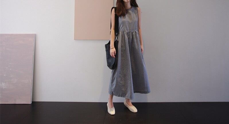 ジャンプスーツ オールインワン パンツ スタイル ワイドパンツ ノースリーブ チェック 七分丈 ハイウエスト 夏 カジュアル ブラック db0150