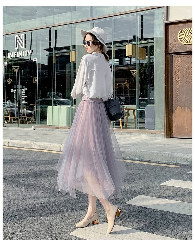 スカート ミモレ ロング フレア チュール 透け感 メッシュ 春 夏 可愛い フェアリー イレギュラーヘム 無地 大人 通勤 ハイウエスト 軽やか 大きいサイズ db0159