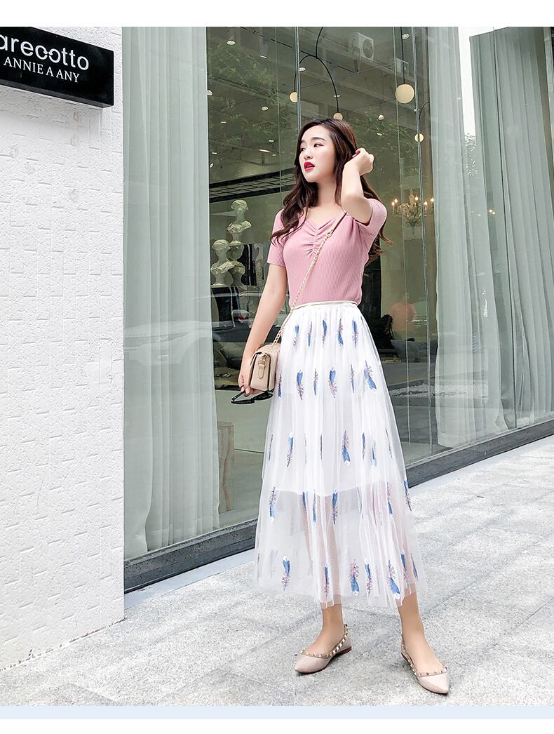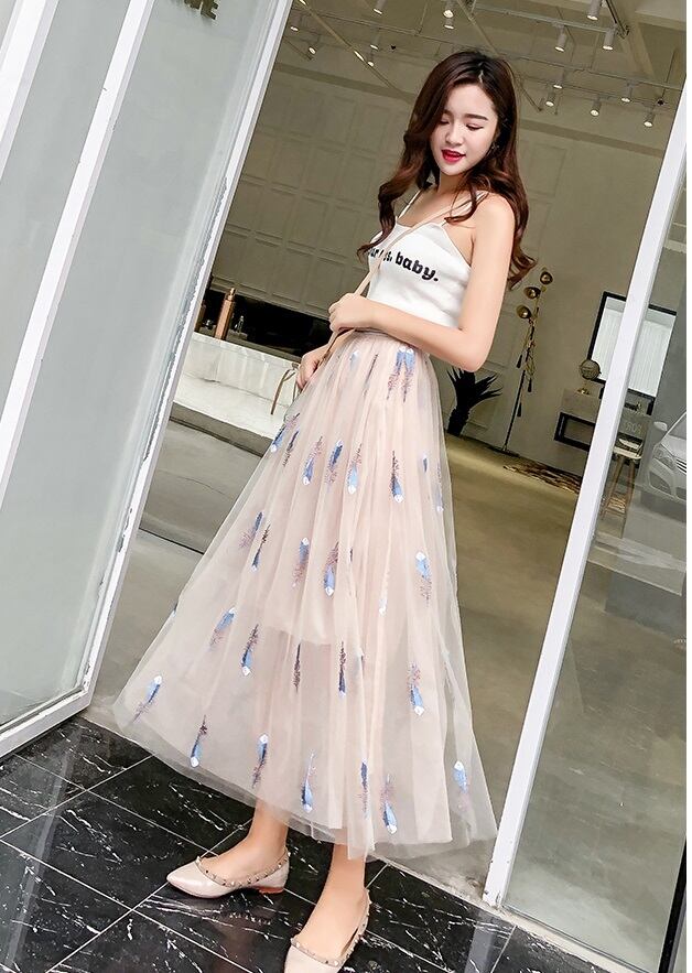スカート ロング フレア チュール 透け感 大きいサイズ 春 夏 可愛い フェアリー 大人 刺繍 羽 柄 ハイウエスト 軽やか db0161