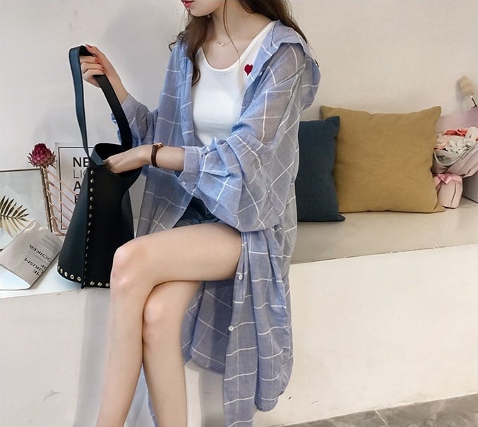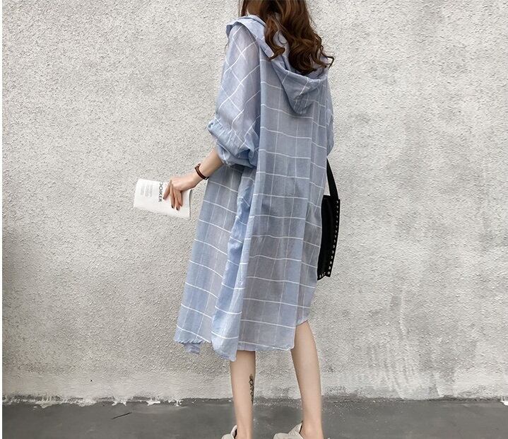 シャツカーデガン シャツブラウス トップス レディース シャツ アウター カーディガン ロング 羽織 長袖 チェック柄 UV対策 フード付 大きいサイズ 2l 3l ゆったり フーディー シャツワンピ アウター ランタンスリーブ 日焼け対策 uv 春 夏 新作 トレンド カジュアル リゾート db0199