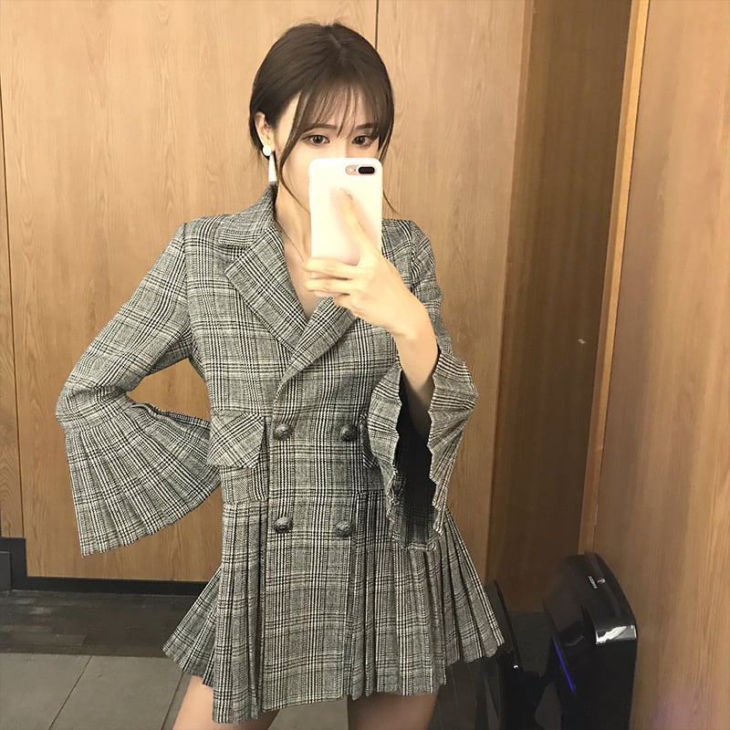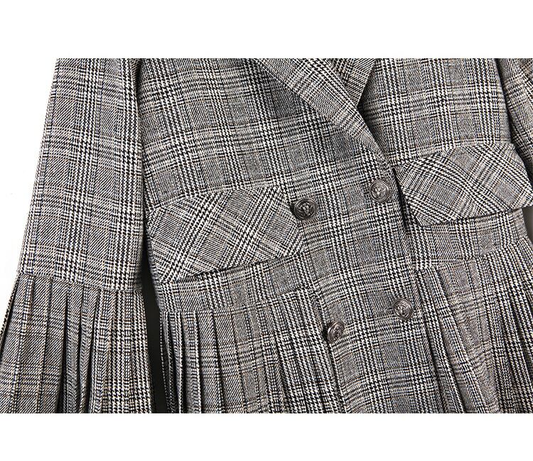 レディース アウター コート ジャケット ショート丈 テーラードジャケット プリーツ 切り替え チェック 格子柄 ホーンスリーブ ベルスリーブ 個性的 大人可愛い おしゃれ グレンチェック グレー 韓国 ファッション レディース 大きいサイズ 秋 冬 おじさんジャケット db0224