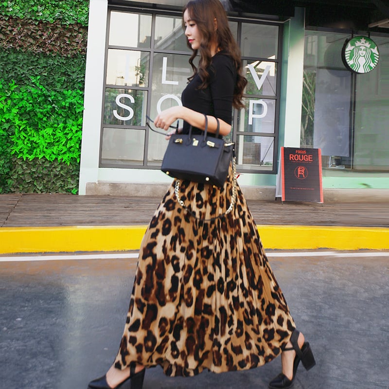 【送料無料】 スカート プリーツスカート ロング ヒョウ柄 レオパード柄 エレガント レディライク 秋 春 ビーチドレス イエロー 10代 20代 30代 40代 db0226