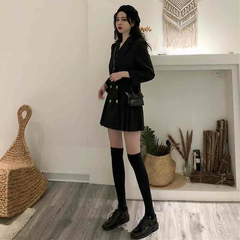 アウター ジャケット 切り替え プリーツ 七分袖 ロングジャケット グレー ブラック 春 OL 学生 10代 20代 30代 レトロ シンプル ミニワンピース db0229