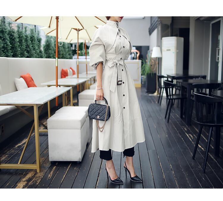 アウター コート ジャケット トレンチコート ウインドブレーカー スタンドカラー ベルト付 シンプル 無地 レトロ 通勤 OL バットスリーブ 長袖 db0236