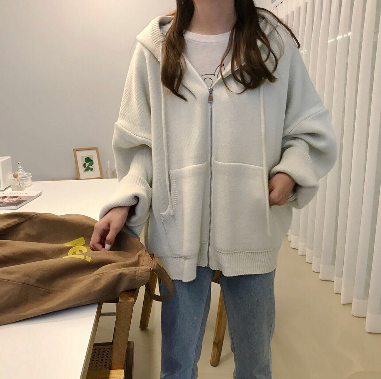 アウター ジャケット セーター フード ゆったり オーバーサイズ 無地 秋 冬 カジュアル 通学 学生 着痩せ 長袖 db0238