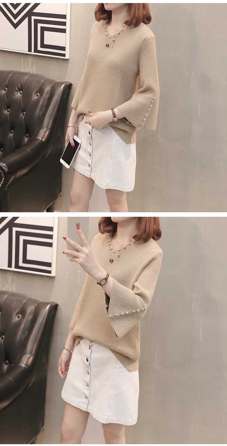 トップス ニット セーター Vネック 長袖 トランペットスリーブ パール ビーズ シンプル 無地 上品 秋 冬 新作 通学 OL デート 大きいサイズ db0252