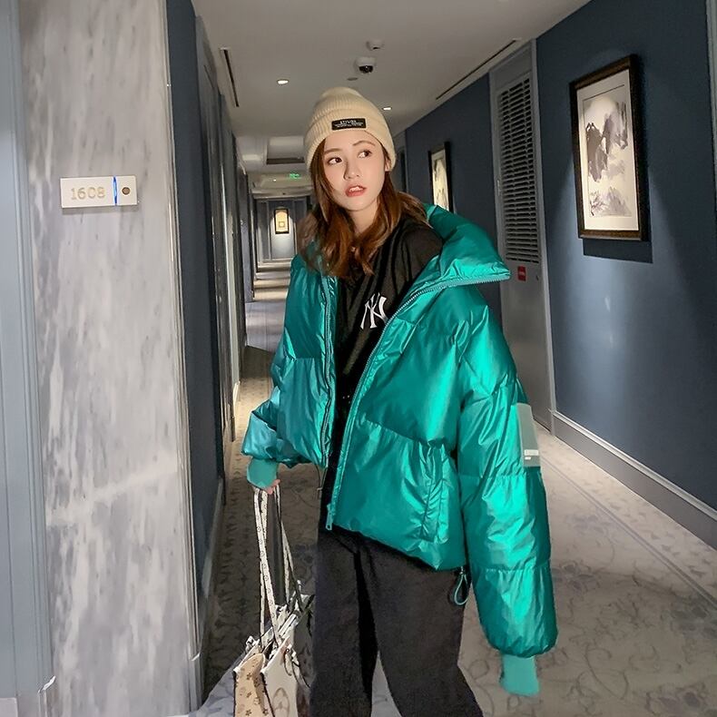 ダウンコート レディース コート アウター レディース ショート丈 ダウン フード無し 秋 冬 10代 20代 30代 長袖 カジュアル かっこいい オーバーサイズ スポーツ グリーン パープル 2019 db0278
