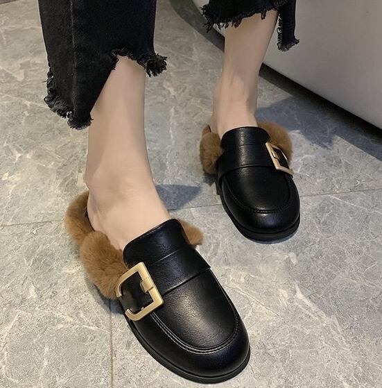 ミュールサンダル ミュールパンプス ローファー サンダル ファー付き ぺったんこ 靴 シューズ レディース スリッパ ファー ローヒール ぺたんこ パンプス 韓国 ファッション レディース トレンド 春 秋 10代 20代 30代 おしゃれ 大人 可愛い 黒 ブラウン db0281