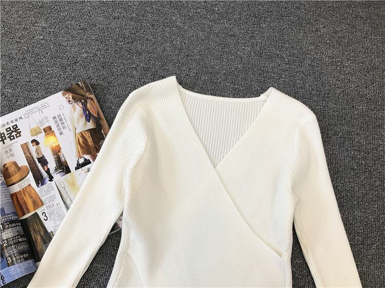 トップス レディース カットソー ニット カシュクール プルオーバー 長袖 無地 ホワイト レッド ブラック 秋 冬 春 スリット Vネック イレギュラーヘム タイト 上品 シンプル OL デート 通勤 10代 20代 30代 着やせ 韓国 新作 大きいサイズ xl db0334