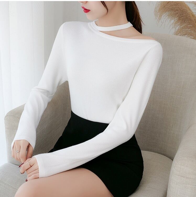 トップス レディース ニット オフショル セーター アシンメトリー ホルターネック プルオーバー 長袖 タイト 薄手 ニットトップス チラ見せ オフショルダー 無地 ブルー ブラック ホワイト カジュアル 無地 10代 20代 30代 40代 秋 春 大人 シンプル トップス コーデ オフィス OL 通勤 デート 大きいサイズ xl 韓国 ファッション レディース トップス 新作 安い おしゃれ 個性的 美スタイル 細身 スリム セクシー お姉さん スタイル db0340