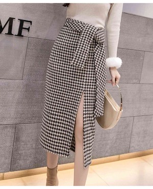 【送料無料】 チェック スカート ミモレ丈スカート タイトスカート 千鳥格子 おしゃれ きれいめ ボトムス レディース 秋冬 千鳥格子 スリット ウエストマーク ハイウエスト タイト ペンシルスカート ベルト 黒 ブラウン スリット 格子縞 チェック柄 膝丈 ミモレ ウール スリット きれいめ セクシー エレガント クラシカル 上品 通勤 通学 学生 OL 秋 冬 デート 10代 20代 30代 新作 大きいサイズ 韓国 db0372