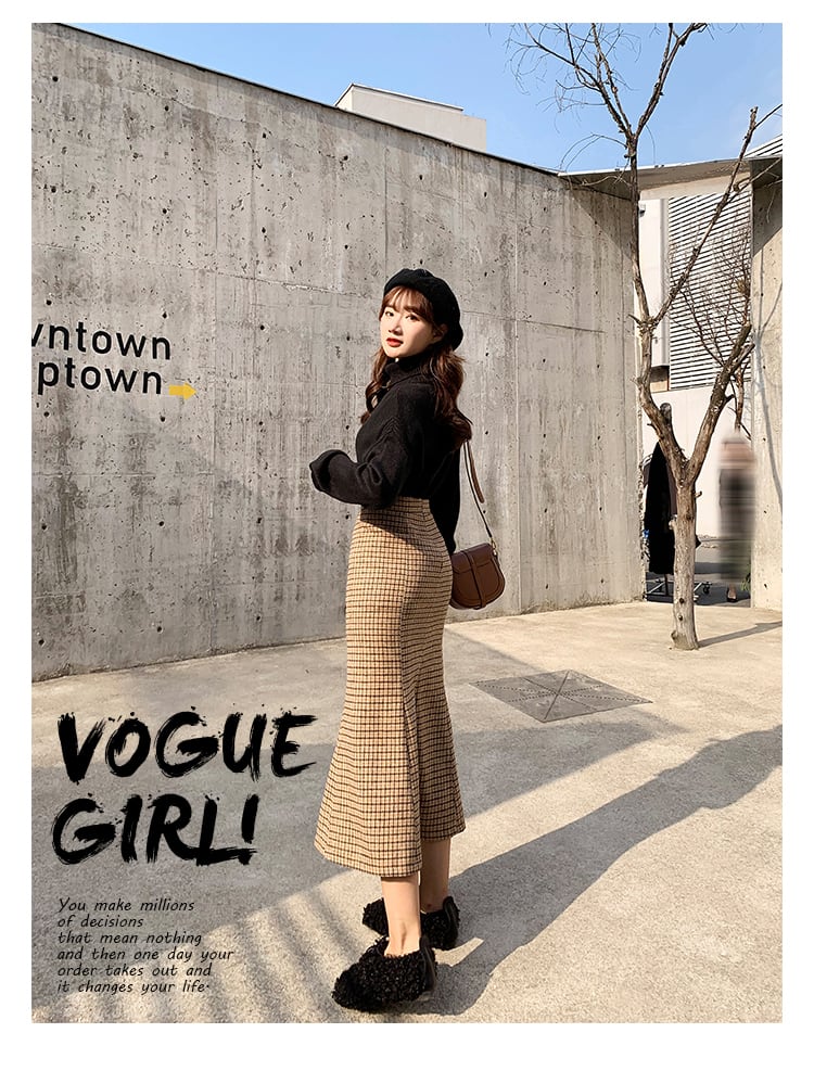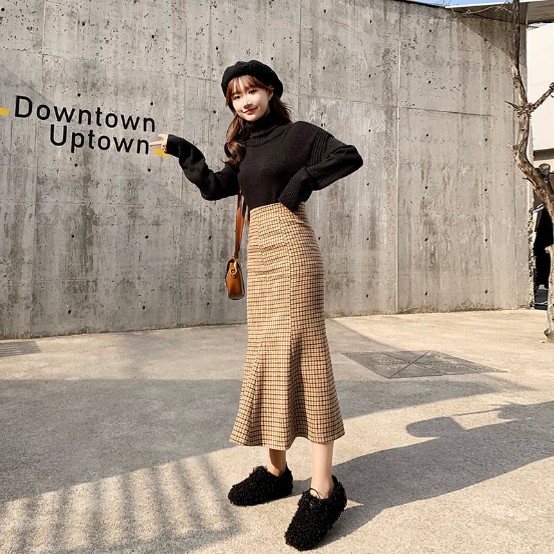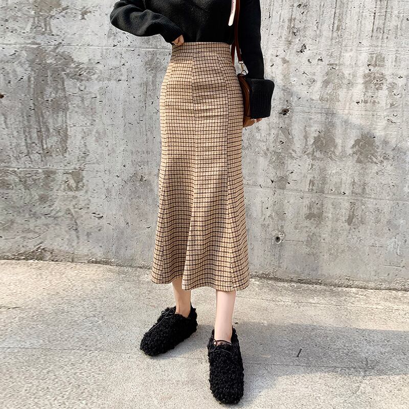 【送料無料】 即納あり チェック スカート ロングスカート スカート ボトムス レディース 秋冬 韓国 ファッション きれいめ マーメイドライン ハイウエスト ミモレ丈 ロング タイト 格子縞 チェック柄 フィッシュテール ブラウン レトロ おしゃれ 大人 可愛い 通勤 通学 学生 OL デート カジュアル 10代 20代 30代 美脚 美尻 2020 db0383