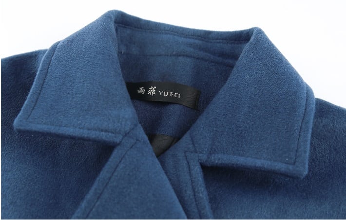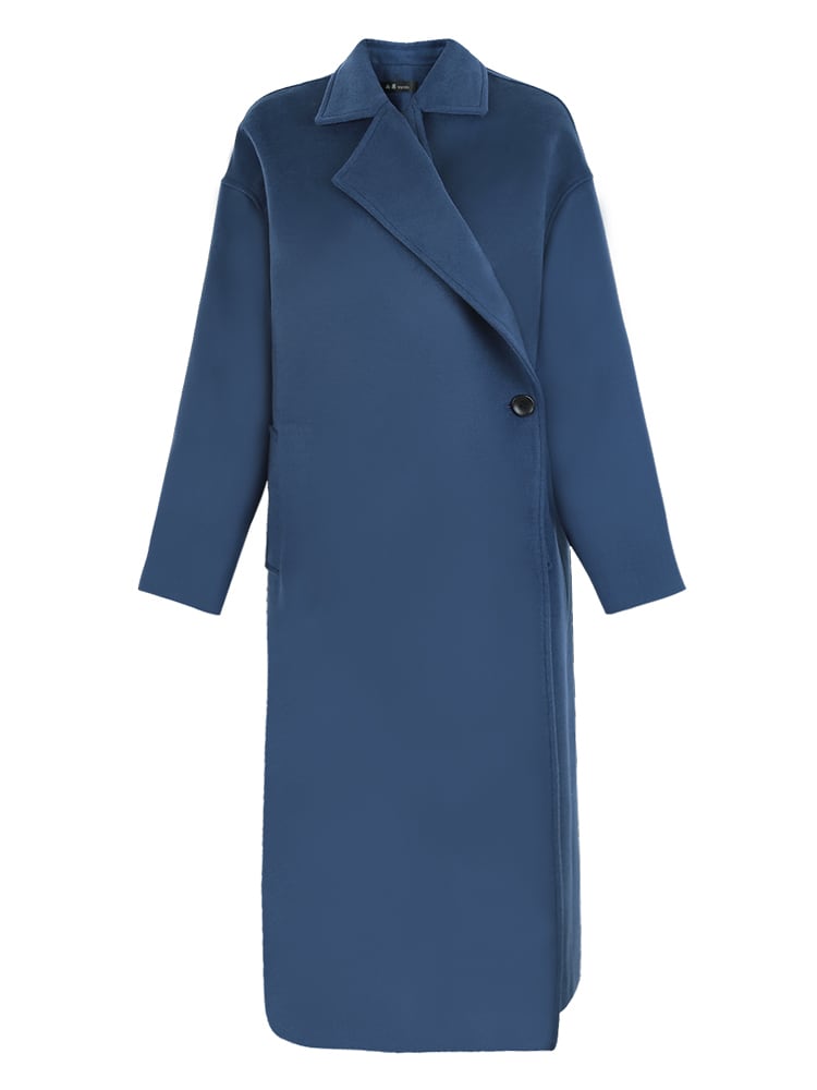 鮮やかな大人ブルーの超ロング丈チェスターコート