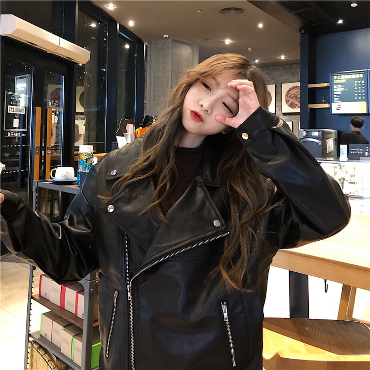 【送料無料】 ライダース ジャケット レザージャケット ショートコート ショート丈 アウター コート ジャケット ブルゾン レディース 秋 冬 10代 20代 30代 40代 オーバーサイズ ゆったり 黒 無地 ブラック かっこいい 大人可愛い きれいめ ショート丈 レザー PU カジュアル クール ジッパー ポケット メンズライク 通勤 通学 デート OL オフィス 韓国 2020 db0402