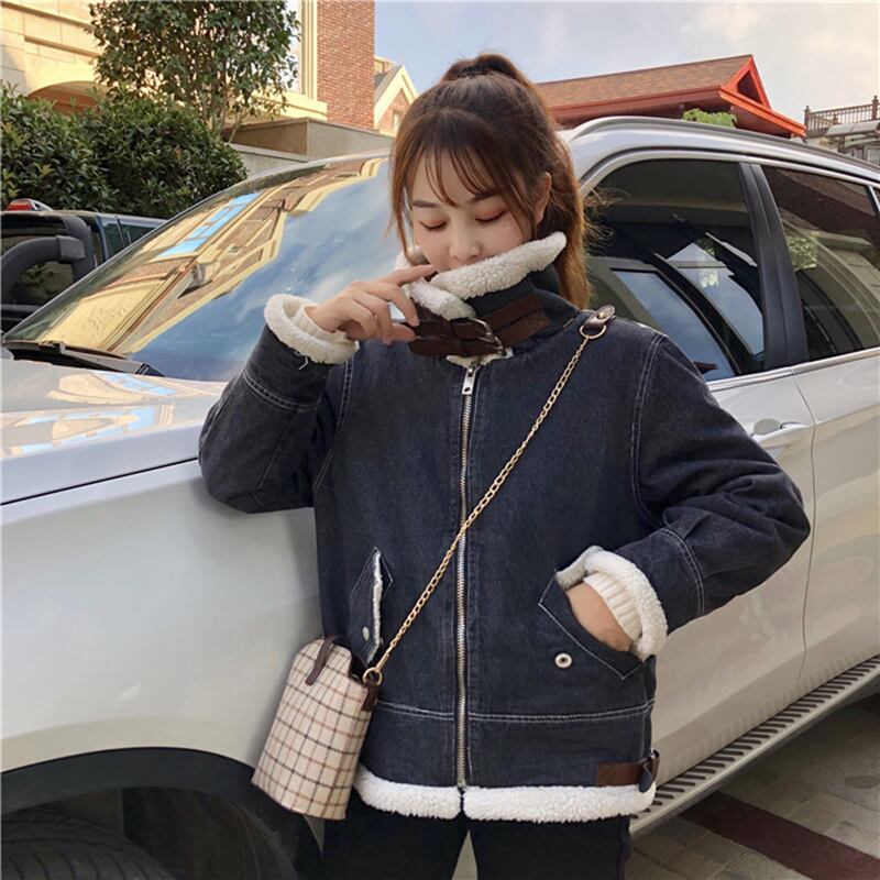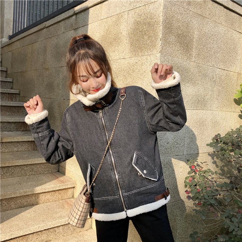 もこもこアウター ボアジャケット ボアブルゾン デニム ジャケット ブルゾン アウター コート レディース コーデ 10代 20代 30代 ショート丈 ボア スタンドカラ? ウール ブラックデニム ポケット 可愛い カジュアル クール 無地 レディ ボーイズライク 通勤 通学 デート OL 韓国 人気 2019 新作 db0405