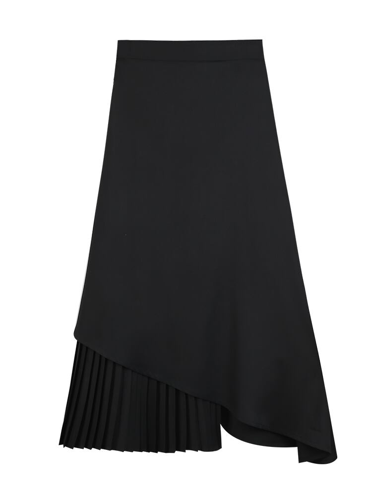 ミモレ丈スカート プリーツスカート 秋冬スカート 切り替え スカート コーデ ボトムス 10代 20代 30代 40代 アシンメトリー 黒 無地 ロング ミモレ丈 きれいめ 大人 シンプル 部分 プリーツ 切り替えデザイン フレア Aライン ブラック 個性的 イレギュラーヘム 大人カジュアル おしゃれ レトロ ハイウエスト エレガント 大人 レディ 通勤 通学 デート OL オフィス 韓国 2019 秋 冬 新作 ウエストゴム 大きいサイズ xl db0413