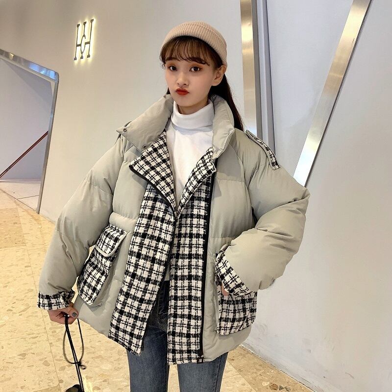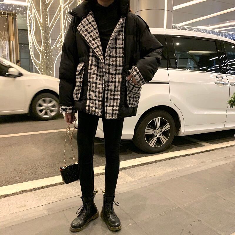 ダウンジャケット もこもこアウター ダウンコート ショート丈 アウター コート ジャケット レディース 秋 冬 10代 20代 30代 チェック柄 バイカラー 切り替え デザイン ダウン 黒 グレー 無地 ショート ミディアム丈 オーバーサイズ ゆったり 大きめ もこもこ 可愛い カジュアル スタンドカラ? 格子縞 レトロ ボタン ビッグポケット おしゃれ 個性的 カジュアル レトロ 学生 通勤 通学 デート OL オフィス 新作 防寒 大きいサイズ db0426