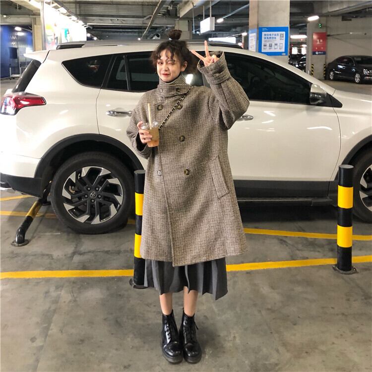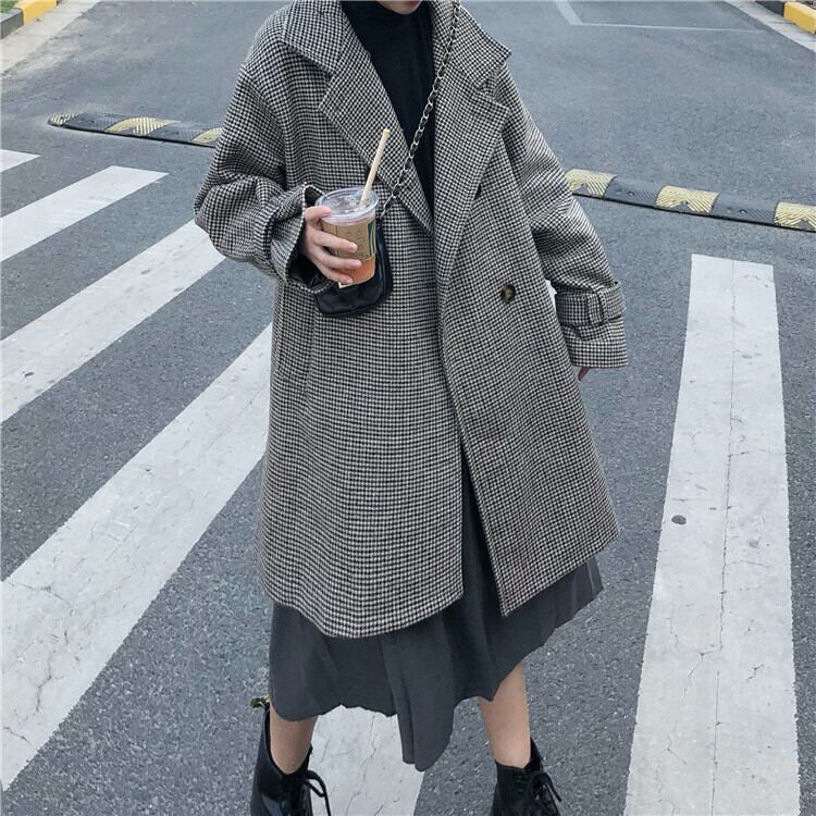 チェックコート ミディアムコート チェスターコート アウター コート ジャケット レディース 秋 冬 10代 20代 30代 40代 千鳥格子 チェック柄 おしゃれ かわいい ダブルボタン 襟 2way スタンドカラー ポケット きれいめ 大人 カジュアル 大きめ ゆったり ルーズ ドロップショルダー オーバーサイズ 通勤 通学 デート OL オフィス 女子会 新作 韓国 人気 db0393