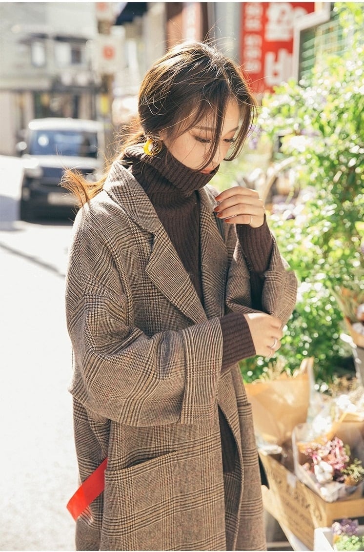 チェックコート ロングコート チェスターコート グレンチェック きれいめ カジュアル コート アウター ジャケット レディース 秋 冬 10代 20代 30代 40代 50代 チェック柄 ミドル丈 ロング 大人 カジュアル コーデ ブラウン 格子縞 シングルブレスト ボタン ポケット ビッグサイズ 大きめ ゆったり ルーズ ドロップショルダー ボリューム袖 シンプル 大人カジュアル ベルト 学生 通勤 通学 デート OL ルーズ ラフ 楽ちん こなれ感 韓国 人気 2019 新作 db0458