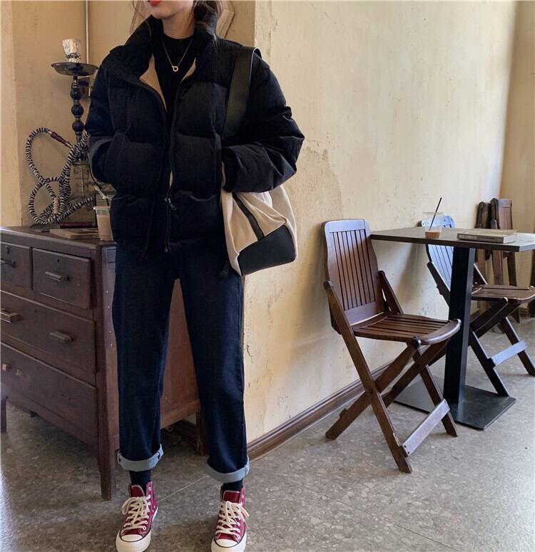 ダウンジャケット ダウンコート ショート丈 コーデュロイ おしゃれ アウター コート ジャンパー ジャケット 上着 レディース 10代 20代 30代 40代 秋 冬 コーデ ショート丈 きれいめ 大人 カジュアル かっこいい カーキ 黒 コート もこもこ ブラック 柔らかい スタンドカラ? 無地 暖かい 防寒 フード無し オーバーサイズ ルーズ ドロップショルダー ゆったり ラフ シンプル ファー無し 上品 レトロ 学生 通勤 通学 デート OL オフィス 韓国 人気 安い 2019 新作 db0461