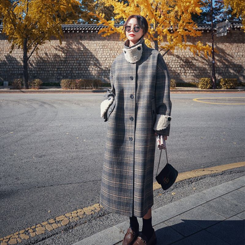 チェックコート ロングコート ボア 超ロング丈 もこもこ おしゃれ きれいめ アウター コート 上着 ジャケット レディース コーデ 10代 20代 30代 40代 秋 冬 チェック柄 ボア モコモコ ロング丈 マキシ丈 コート グレー 格子縞 綺麗め 大人 カジュアル 個性的 シングルブレスト スタンドカラ? モコモコ オーバーサイズ ルーズ こなれ感 シンプル 主役級 個性的 お洒落 普段使い 主役 学生 通勤 通学 デート OL オフィス 韓国 人気 2019 新作 大きいサイズ xl db0462