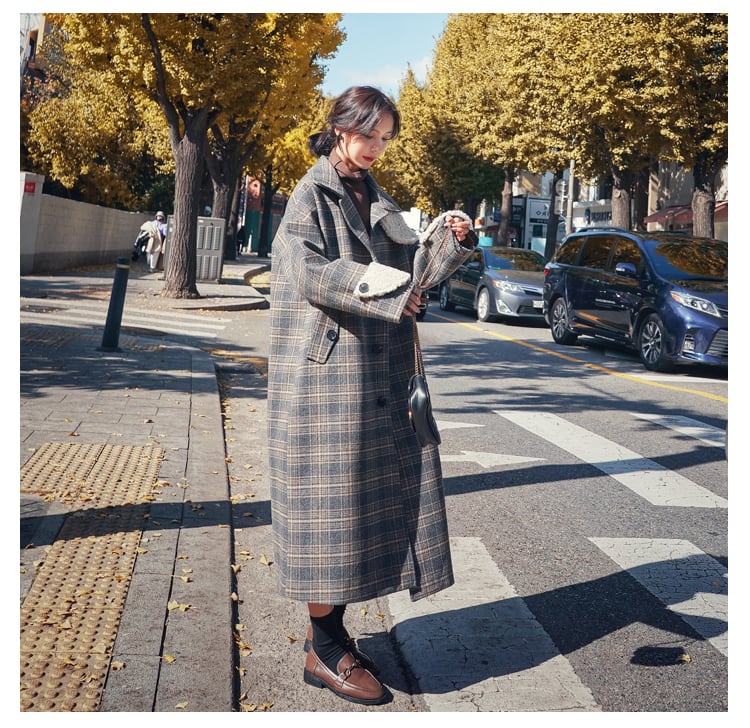 人気のボアをポイントに使ったお洒落なチェック柄ロングコート!