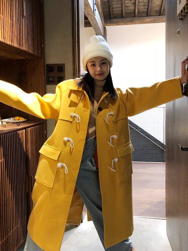 ダッフルコート ミディアム丈コート アウター コート ジャケット 上着 レディース 秋 冬 10代 20代 30代 40代 ウール 黄色 黒 イエロー ブラック 無地 ダッフル ミドル丈 膝丈 ホーンバックル ストレート 大人カジュアル 学生 通勤 通学 デート OL オフィス 韓国 人気 安い 2019 新作 小さいサイズ xxs xs 大きいサイズ xl db0479