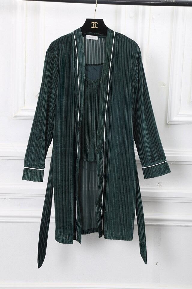 パジャマ レディース ルームウェア 部屋着 秋 冬 3点セット 上下セット きれいめ 大人 長袖 パンツ カーディガン キャミソール ベルベット 緑 ネイビー グレー ノースリーブ パイピング 無地 セクシー デート お泊り会 シンプル 10代 20代 30代 大きいサイズ xl 韓国 2019 新作 人気 安い db0494