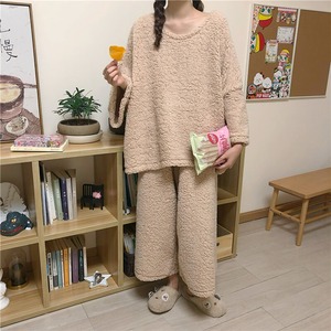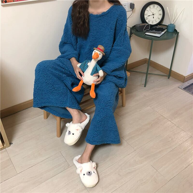 【送料無料】 ルームウェア レディース もこもこ 秋冬 パジャマ 寝巻き 部屋着 ホームウェア 上下セット モコモコ 大きめ ゆったり ビッグサイズ 10代 20代 30代 韓国 フーディー もこもこ 2点セット パンツ 防寒 暖かい フリース ラウンドネック 長袖 無地 部屋着 セット セットアップ パンツ カーキ 紫 ブルー 青 無地 シンプル オーバーサイズ キュート ラブリー かわいい 可愛い パジャマ 女子会 お泊まり会 秋 冬 カジュアル ルーズ db0525