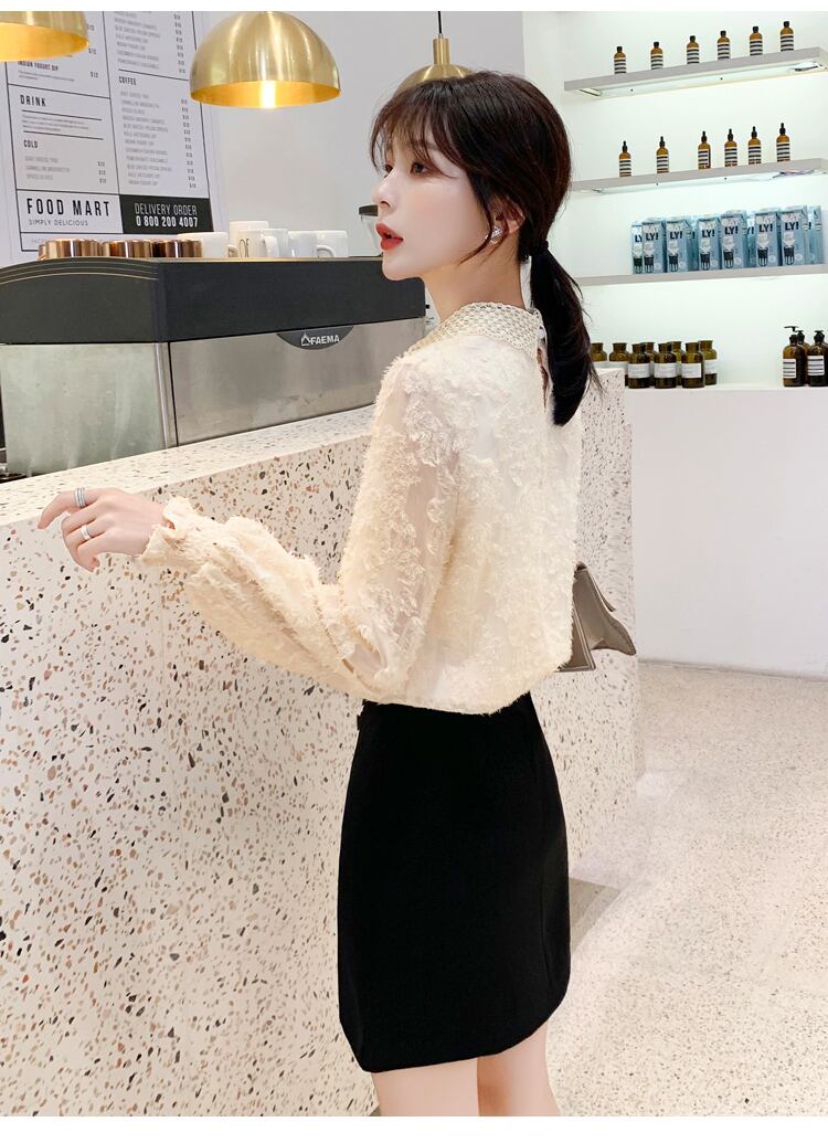 トップス レディース シャツ ブラウス 長袖 韓国 春 秋 冬 10代 20代 30代 40代 レース 襟 とろみ感 大人かわいい こなれ感 パール ボタン ランタンスリーブ ボリューム袖 きれいめ おしゃれ シャツ ブラウス コーデ 白シャツ 無地 アプリコット ベージュ 上品 ガーリー 女子力 かわいい ママ おしゃれ デート OL 通勤 オフィス ビジネス フォーマル 総レース 個性的 美人 モテ ブラウス 華やか ふんわり キュート db0555