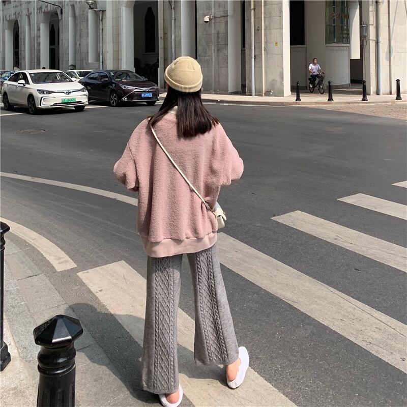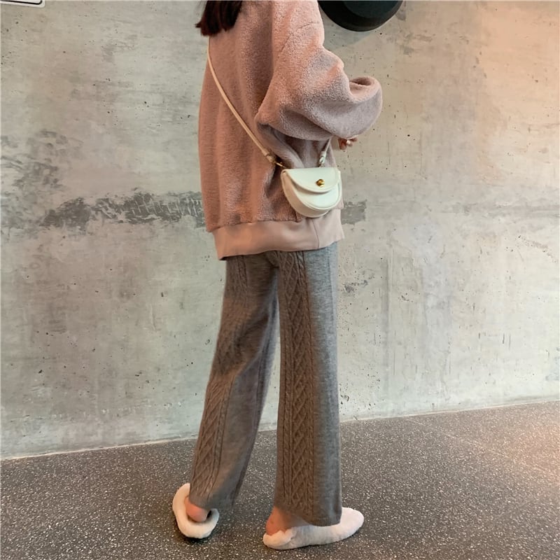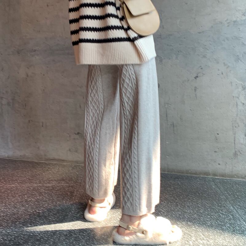 ニットパンツ ワイドパンツ レディース パンツ ボトムス スボン 春 秋 冬 10代 20代 30代 40代 ニット ストレート パンツ バックコンシャス ハイウエスト ケーブル 編み込み風 おしゃれ カジュアル アプリコット ベージュ グレー 大人 きれいめ パンツ スタール コーデ ルーズ こなれ感 おしゃれ デート 学生 通学 リラックス リュクス 抜け感 トレンド 韓国 人気 新作 db0567