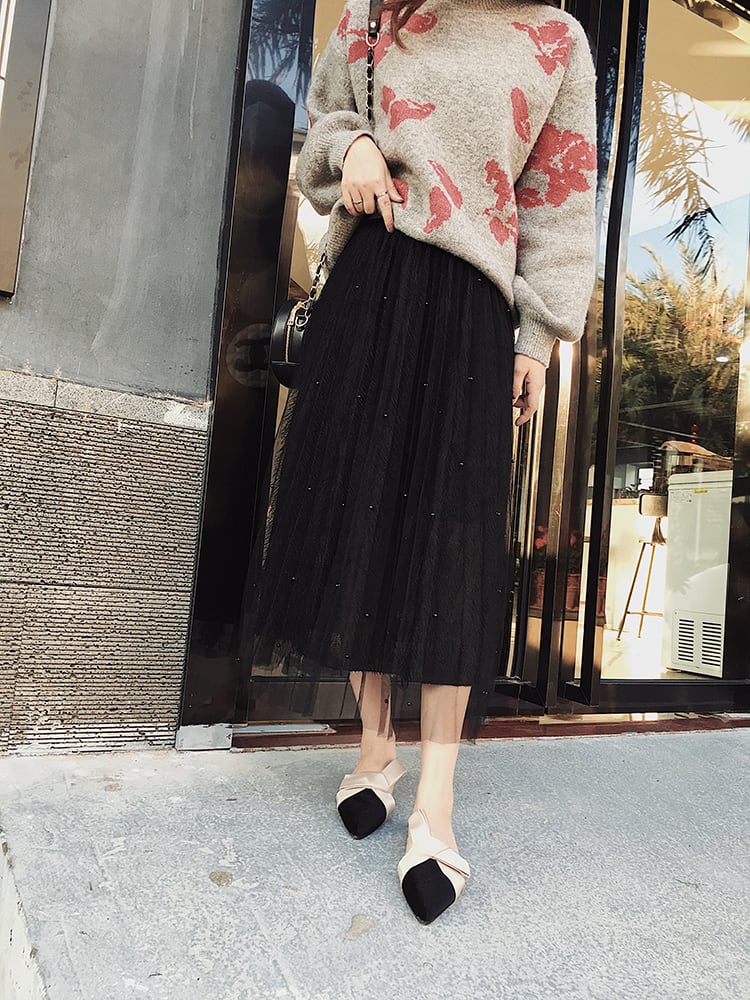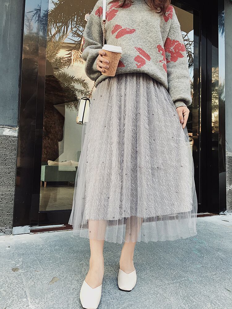 ロングスカート プリーツスカート スカート ボトムス レディース 春 秋 冬 韓国 10代 20代 30代 ロング プリーツ 切り替え デザイン 異素材MIX Aライン フレア 個性的 おしゃれ スカート コーデ ハイウエスト ブラウン ブラック グレー 茶色 黒 シフォン パール ビーズ 大人カジュアル きれいめ ボトムス 通勤 OL オフィス デート 美人 モテ ガーリー キュート ふんわり 韓国 ファッション 人気 新作 かわいい ボトムス スタイル ウエストゴム ゆったり 楽ちん db0576