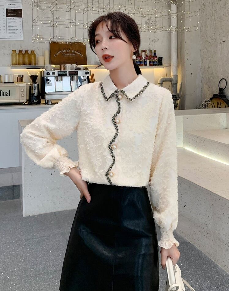 トップス レディース ブラウス シャツ 上品 きれいめ 長袖 韓国 春 秋 冬 10代 20代 30代 40代 レース 襟 パール ボタン おしゃれ 個性的 ブラウス コーデ 白シャツ アプリコット ベージュ エレガント 大人 シンプル 綺麗め ママ OL 通勤 オフィス フォーマル デート オフィス レトロ ガーリー キュート スタイル 美人 モテ 人気 新作 大きいサイズ xl 2xl db0581