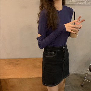 トップス レディース カットソー ロング Tシャツ プルオーバー スリム タイト デザイン シャツ ブラウス 長袖 韓国 春 秋 10代 20代 30代 40代 薄め ラウンドネック 袖 スリット 細身 無地 グリーン 緑 ブルー 青 ブラック 黒 細見え 着やせ 大人 カジュアル シンプル トップス コーデ 通勤 通学 学生 OL オフィス お出かけ セクシー 綺麗めトップス スタイル 韓国 人気 ファッション db0598