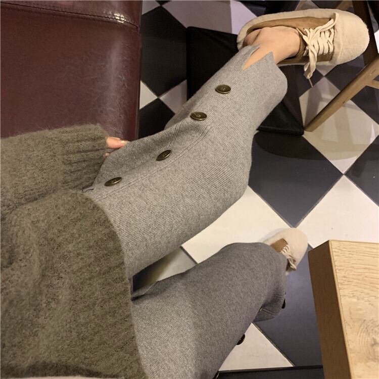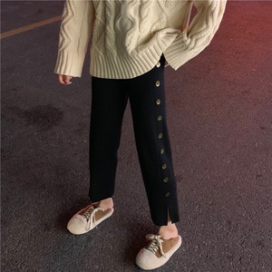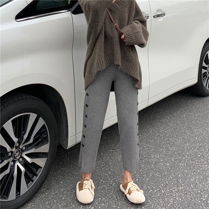 パンツ ズボン ボトムス レディース ニットパンツ ワイドパンツ おしゃれ 韓国 春 秋 冬 10代 20代 30代 40代 ハイウエスト 無地 カジュアル パンツ コーデ サイド ボタン クロップド パンツ ストレート 9分丈 スリット ブラック 黒 グレー 美脚 大人カジュアル スタイル 楽ちん ゆったり パンツ ニット 細見え 足長 ママ コーデ おしゃれ トレンド 学生 通学 お出かけ 韓国 ファッション レディース かわいい パンツ 新作 安い 人気 db0622