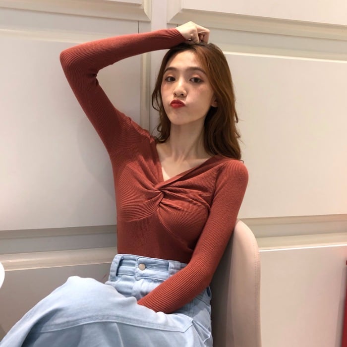 ニット トップス レディース リブ ニット セーター プルオーバー Vネック カシュクール きれいめ セクシー 長袖 韓国 春 秋 冬 10代 20代 30代 40代 デザイントップス シンプル タイト 無地 ブルー ホワイト 白 グリーン ブラック ピンク レッド 黒 大人カジュアル トップス コーデ スリム 細身 美スタイル おしゃれ 学生 通学 オフィス 通勤 OL デート 韓国 ファッション レディース トップス ニット 人気 新作 モテ カジュアル スタイル キュート かわいい db0652