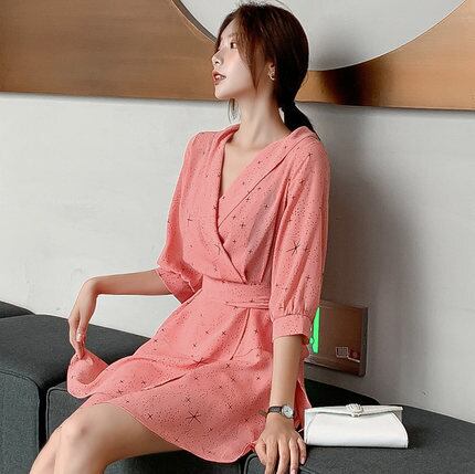 ワンピース ドレス レディース シフォン 透け感 ミニ スカート フレア カシュクール 袖あり 春 夏 秋 韓国 10代 20代 膝上 膝丈 ミニ丈 パステルカラー 七分袖 リボン ウエストマーク Vネック 透け感 シースルー ハイウエスト 華やか アプリコット ホワイト ベージュ ピンク フリル フレア 鮮やか 可愛い ガーリー モテ キラキラ ラメ 柄 おしゃれ トレンド 韓国 ワンピ ドレス かわいい 美スタイル とろみ感 ふんわり キュート db0683