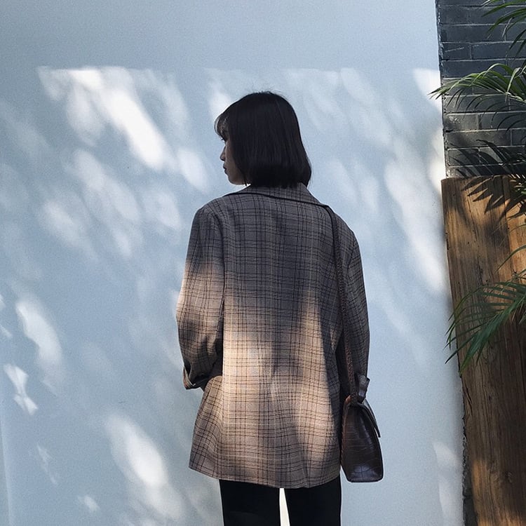 テーラードジャケット アウター ジャケット レディース グレンチェック カジュアル ショート コート 上着 長袖 春 秋 10代 20代 30代 ゆったり ルーズ感 大きめ 大人 シンプル アウター コーデ おじさん ジャケット チェック柄 格子縞 ビッグサイズ グレー ブラウン 茶色 大人 ママ オフィス OL 通勤 学校 女子会 デート モテ かっこいい おしゃれ トレンド 韓国 ファッション レディース アウター こなれ感 抜け感 きれいめ 人気 新作 安い お洒落 個性的 db0694
