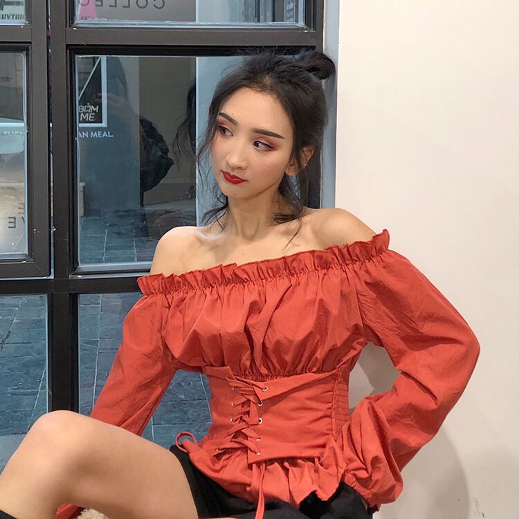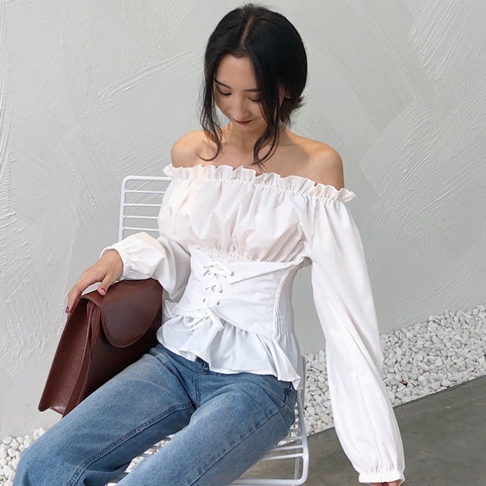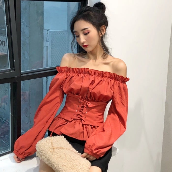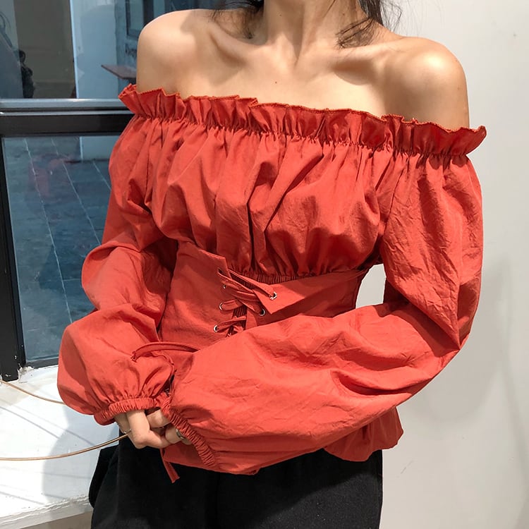 トップス レディース シャツ ブラウス オフショル プルオーバー 長袖 コルセット 長袖 韓国 春 夏 秋 10代 20代 30代 レースアップ 無地 ホワイト 白 オレンジ ボリューム袖 オフショルダー 大人かわいい セクシー ブラウス コーデ 春トップス 通学 学生 デート トレンド デート 韓国 ファッション レディース トップス 人気 新作 モテ カジュアル スタイル 美スタイル 体型カバー スタイルアップ お姉さん 袖あり 白シャツ 白トップス かっこいい 存在感 個性的 db0713